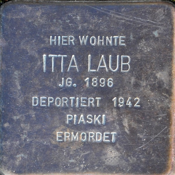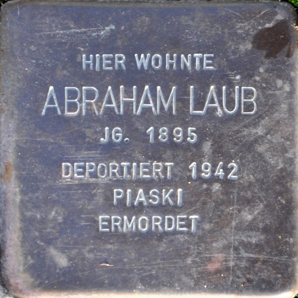 Abraham und Itta Laub waren eine wohlhabende Kaufmannsfamilie, die in Mainz eine Rohstoffhandlung mit Metallen, Tierfellen und Lumpen betrieben. Bevor sie 1940 enteignet und zwangsweise nach Mainz-Kastel, Eleonorenstraße, umziehen mussten, konnten sie noch ihre drei Söhne in der Schweiz in Sicherheit bringen.